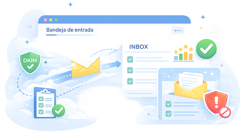 Factores como la reputación de envío, la calidad de tu lista de contactos y la autenticación del dominio pueden influir en cómo los proveedores de correo procesan tus mensajes.